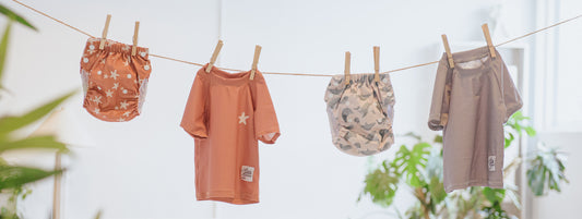 Qui a dit que la protection solaire devait être ennuyeuse ? Avec des choix de motifs discrets et de couleur tendances tels que Marin (gris), Étoile de mer (rouille), Ivoire et Thé vert, vous pouvez les assortir pour créer l'ensemble parfait au bord de la piscine. De plus, en les associant à nos couches de bain, elles sont adorables à souhait !